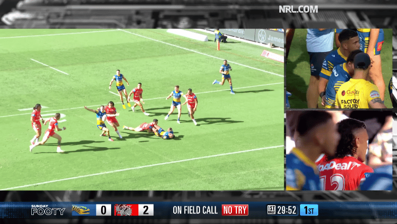 That isn’t the rule. However, with three defenders around him, including Jayden Su’a draped all over him early, it seems unlikely that Jonah Pezet would have got over the line from here.
