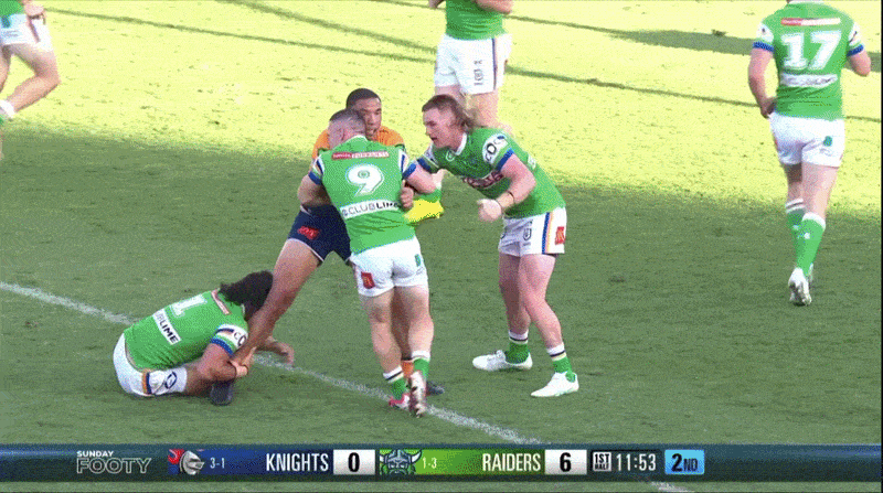 Knights Dominate The Jam: The Raiders edge defence has a reputation for jamming. They’re physical, aggressive, and often make the right decision and do so without second-guessing themselves. However, it can come at a cost when the attack gets their part right.