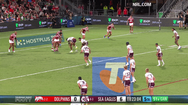 Block On Last: Foran and his staff didn’t have long to get sorted throughout the week, but landed on an excellent plan for their last plays inside the Dolphins 20. Twice - with the Dolphins wingers back in the pocket early to field a kick - they used their backrower as a ball player with the centre running a lead for the fullback.
