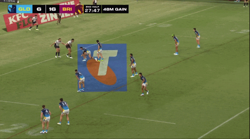 The Gold Coast Titans must have identified how tight Kotoni Staggs defends at times. Only two plays before the should-be try, they applied a similar fade on Staggs to his outside shoulder. From a more narrow field position and earlier in the set, Brimson ran out of room before turning is winger back underneath. However, with another chance and more space 30 seconds later, he nailed the run.